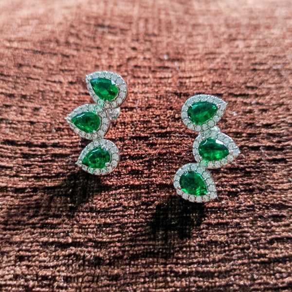 Add a regal touch to your festive ensemble with the Green Radiance Teardrop Studs. Featuring faceted green gemstones encircled by shimmering halos, these earrings are crafted in a silver-toned setting that enhances their brilliance. Perfect for weddings, celebrations, or elegant gifting.