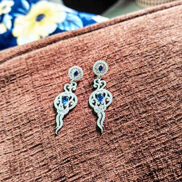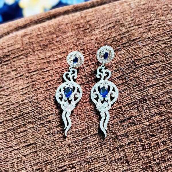 Step into timeless elegance with the Royal Sapphire Drop Silver Earrings, featuring deep blue gemstones framed by intricate silver filigree and shimmering halos. Perfect for weddings, festive occasions, or statement gifting, these earrings blend regal charm with handcrafted artistry.
