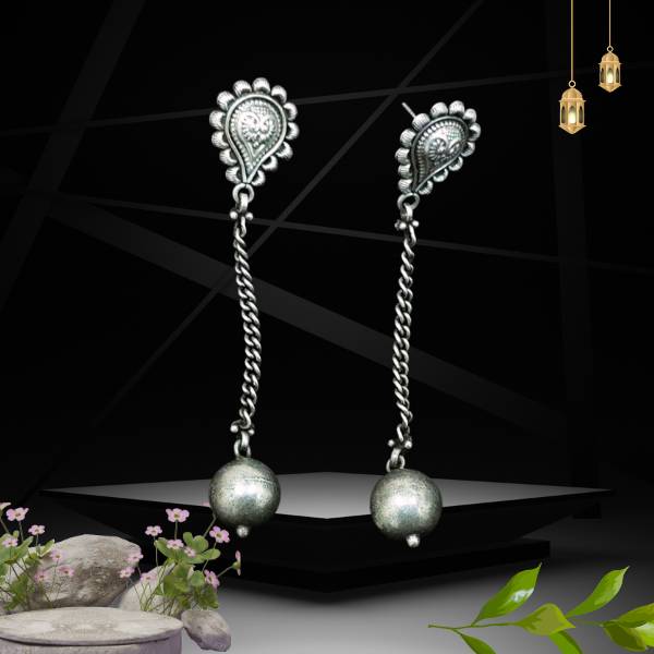 Handcrafted 925 sterling silver earrings featuring a classic paisley stud with a twisted chain drop and silver ball finish. Elegant, lightweight, and perfect for everyday or festive wear.