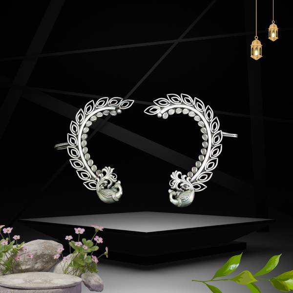 Handcrafted 925 sterling silver cuff bracelet featuring an elegant peacock motif with leaf-pattern detailing. Finished with an oxidized look, perfect for festive and everyday wear.