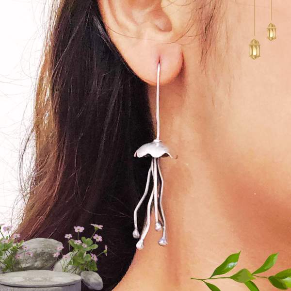 Minimal sterling silver earrings with a delicate leaf form and fluid drop strands. Lightweight, modern, and effortlessly elegant.Inspired by nature, these Leaf Drop Sterling Silver Earrings feature a soft leaf-shaped top with fine flowing silver strands that move gracefully with every step. Handcrafted in sterling silver, they are perfect for everyday wear, office styling, or subtle festive looks.