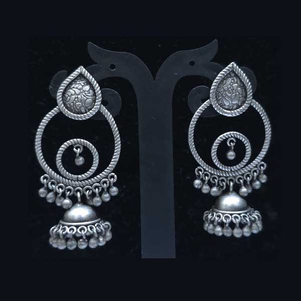 Stylish 925 sterling silver long earrings with teardrop stud, double hoop design, oxidized finish, ghungroo drops, and a mini jhumka for ethnic elegance.Add bold traditional charm to your look with Hoop Jhumka Silver Earrings, crafted in 925 sterling silver with an antique oxidized finish. The engraved teardrop stud connects to a double hoop frame, finished with ghungroo-style danglers and a hanging mini jhumka for beautiful movement. Perfect for festive wear, weddings, and Indo-western styling.
