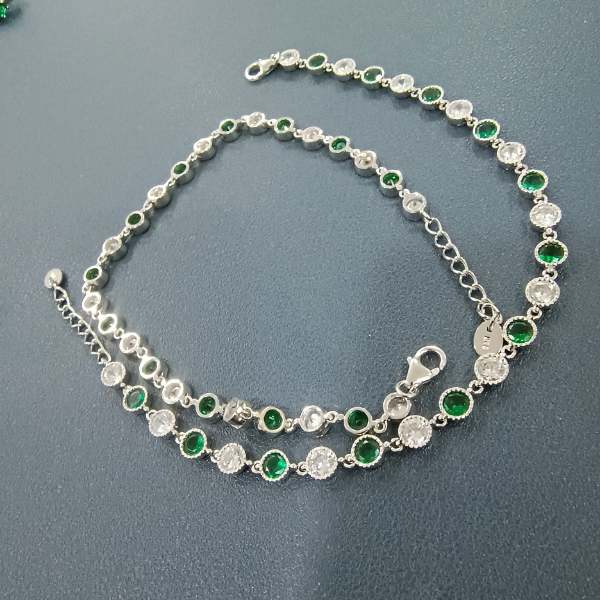 Gracefully crafted in 925 sterling silver, the Emerald Aura Anklet features alternating emerald-green and sparkling white stones linked in a classic tennis-style design. Elegant, lightweight, and timeless—perfect for everyday wear and special occasions.